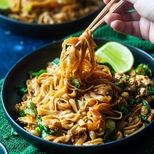 This Vegan Thai Noodle Soup is made with tofu, noodles, and pak choi, all packed in a flavorful broth. Easy & perfect for weeknight dinners. Quick 10-minute recipe!