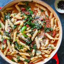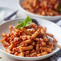 15-minutes Spicy Penne in Tomato Sauce with Salami